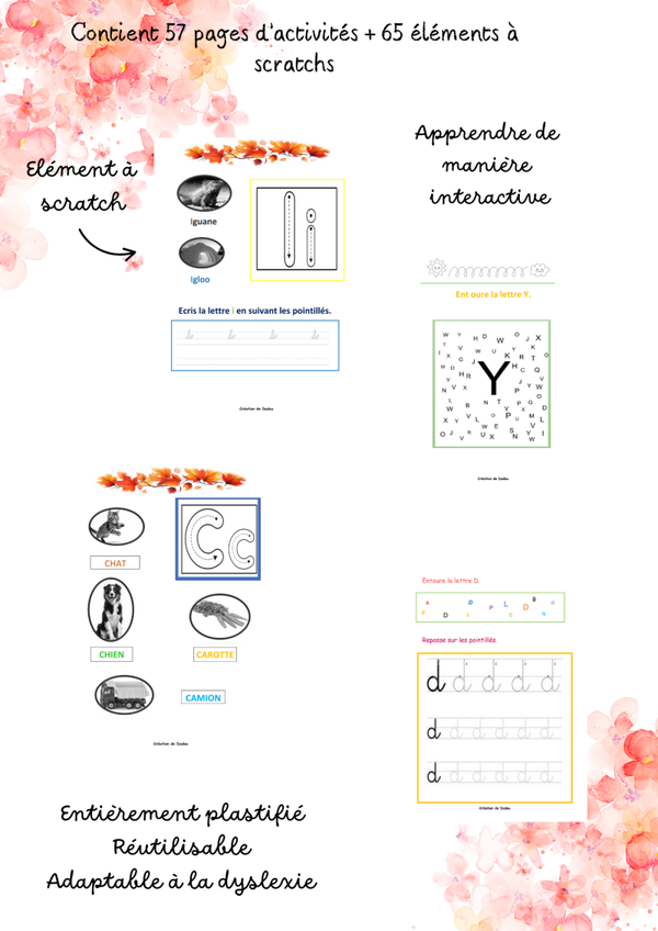 Aidez votre enfant à découvrir les lettres avec plaisir grâce à notre livret interactif, 100 % plastifié et conçu pour durer.